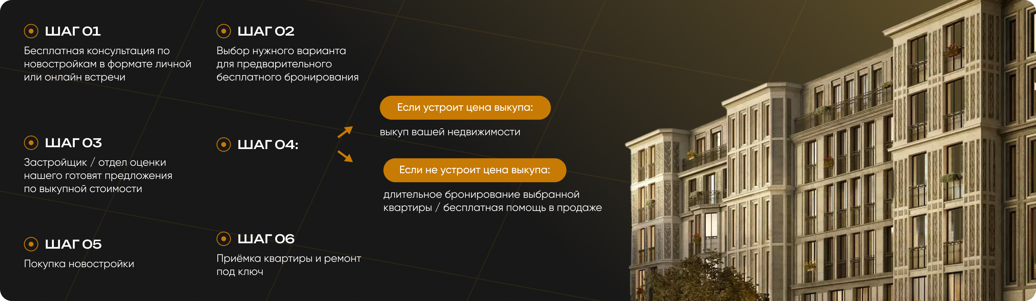 Мы поможем максимально оперативно продать вашу недвижимость и купить следующую — проведём вас через весь процесс с максимальной выгодой и заботой о результате.
